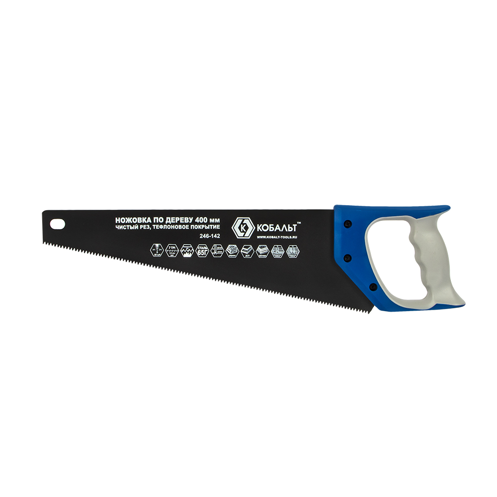 Ножовка по дереву 400мм, шаг 3,5мм/7, тефлоновое покрытие, закаленный зуб, 3D заточка, 2-х компонентная ручка, КОБАЛЬТ