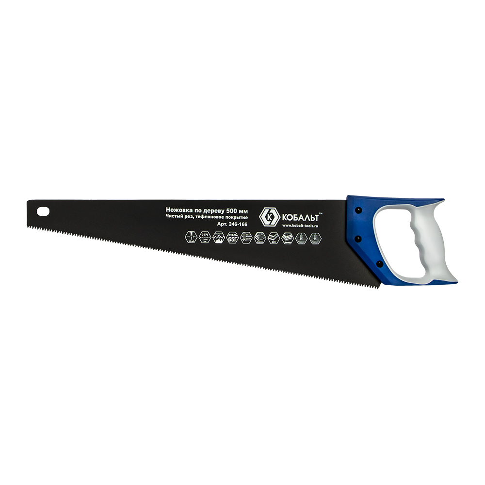 Ножовка по дереву 500мм, шаг 3,5мм/7, тефлоновое покрытие, закаленный зуб, 3D заточка, 2-х компонентная ручка, КОБАЛЬТ