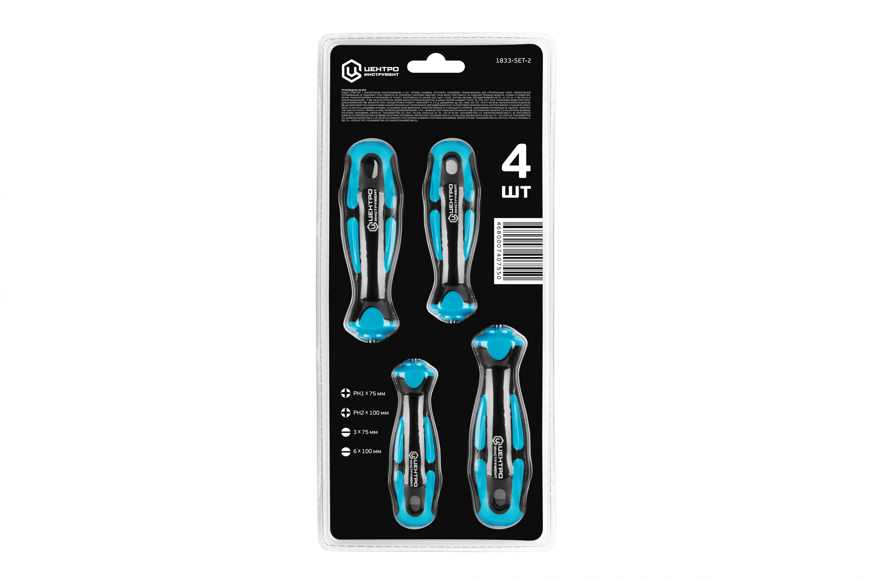Набор отверток 4 предмета (PH1 x75мм.PH2 x100мм,шлиц 3 x75мм,6 x100мм) Центроинструмент