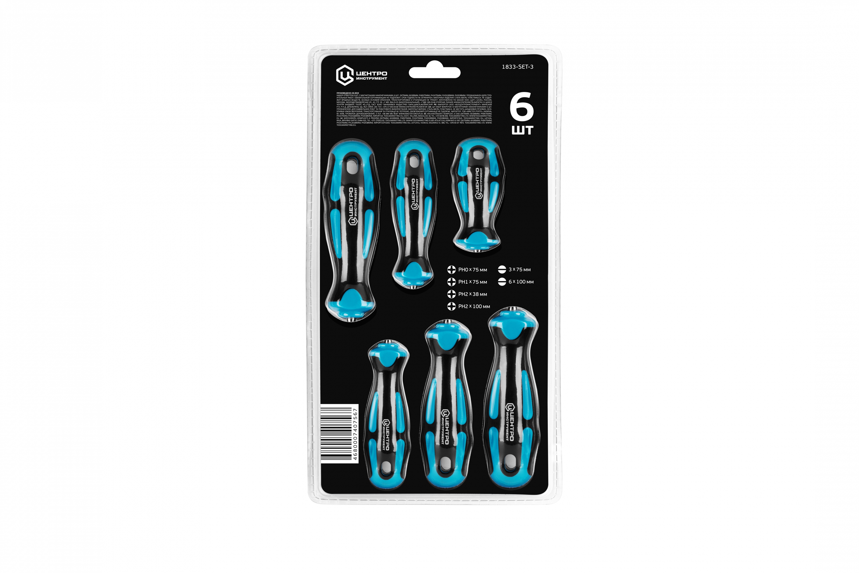 Набор отверток 6 предметов (PH0 x75мм,PH1 x75мм.PH2 x100мм,PH2 x38 шлиц 3 x75мм,6 x100мм) Центроинструмент