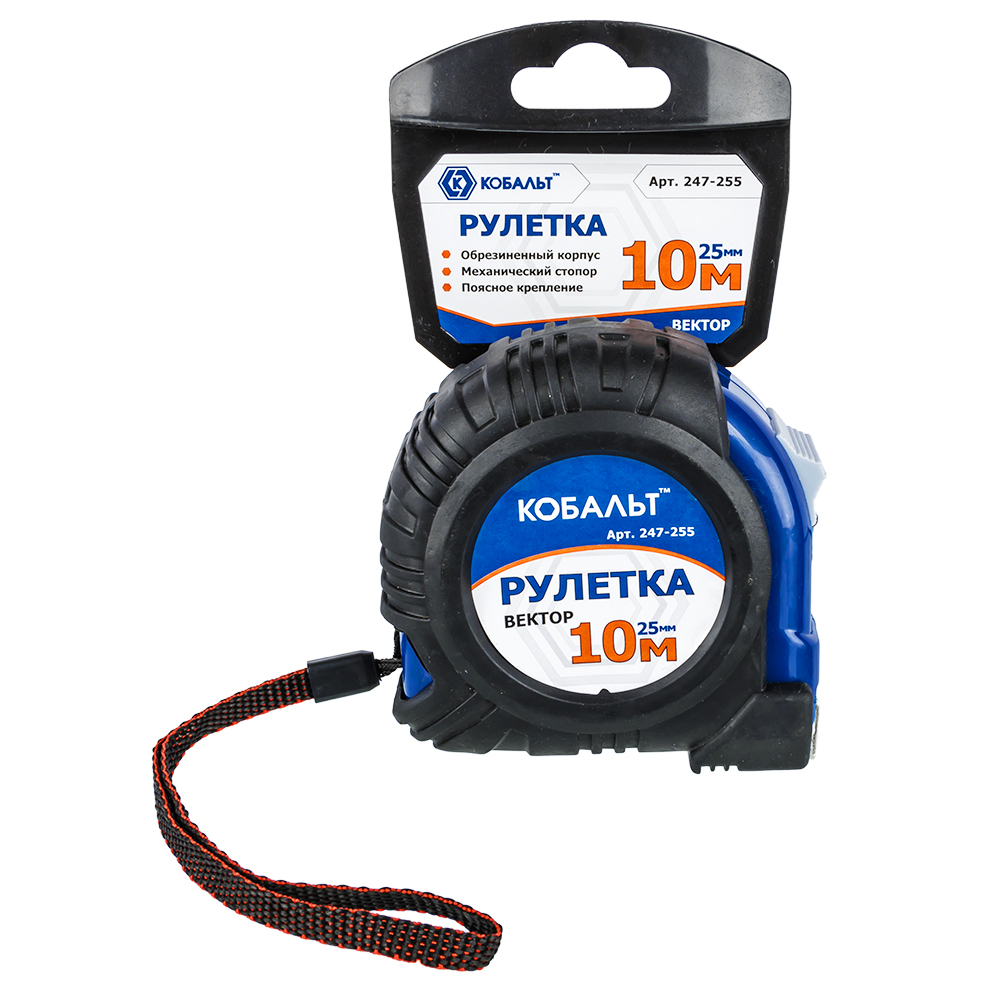 Рулетка 10м*25мм, противоскользящая, механический стопор, КОБАЛЬТ