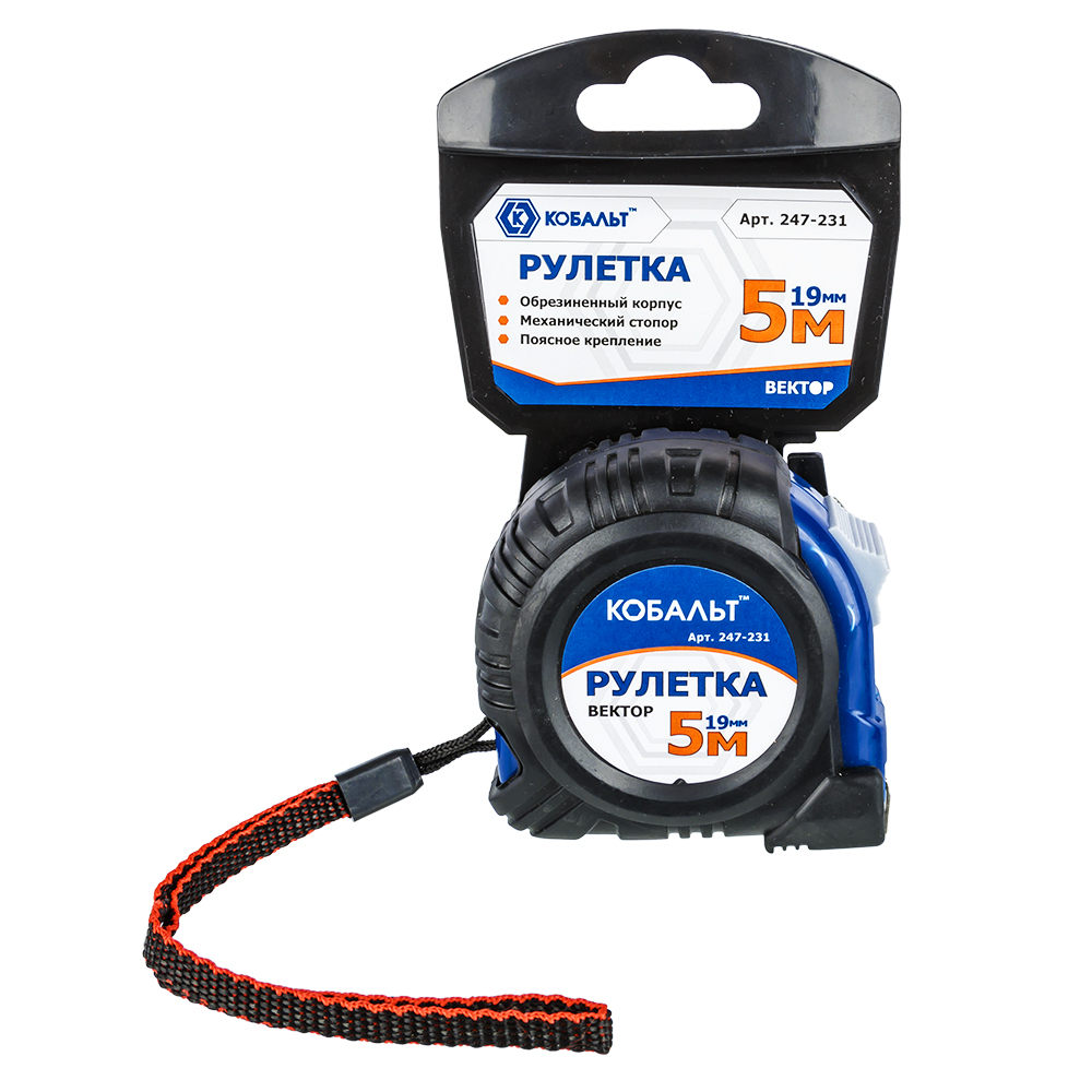 Рулетка 5м*19мм, противоскользящая, механический стопор, КОБАЛЬТ