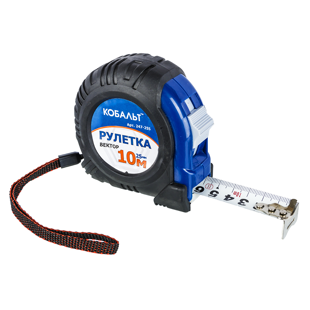 Рулетка 10м х 25мм обрезиненная КОБАЛЬТ 247-255 "Вектор" предназначена для измерения расстояний, снятия размеров, производства разметки при проведении строительных, интерьерных и монтажных работ.