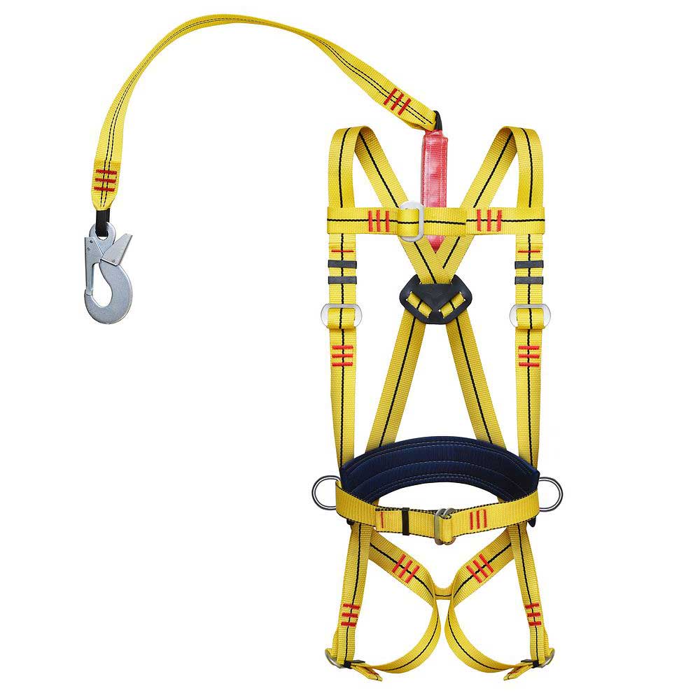 Состоит из привязи ремня с пряжкой, наплечных и набедренных лямок, кушака, двух D-колец на поясе (для удержания и позиционирования) и одного на спине и страховочного стропа из полиэфирной ленты с амортизатором. Привязь упакована в водонепроницаемый пакет и содержит паспорт и инструкцию по применению.