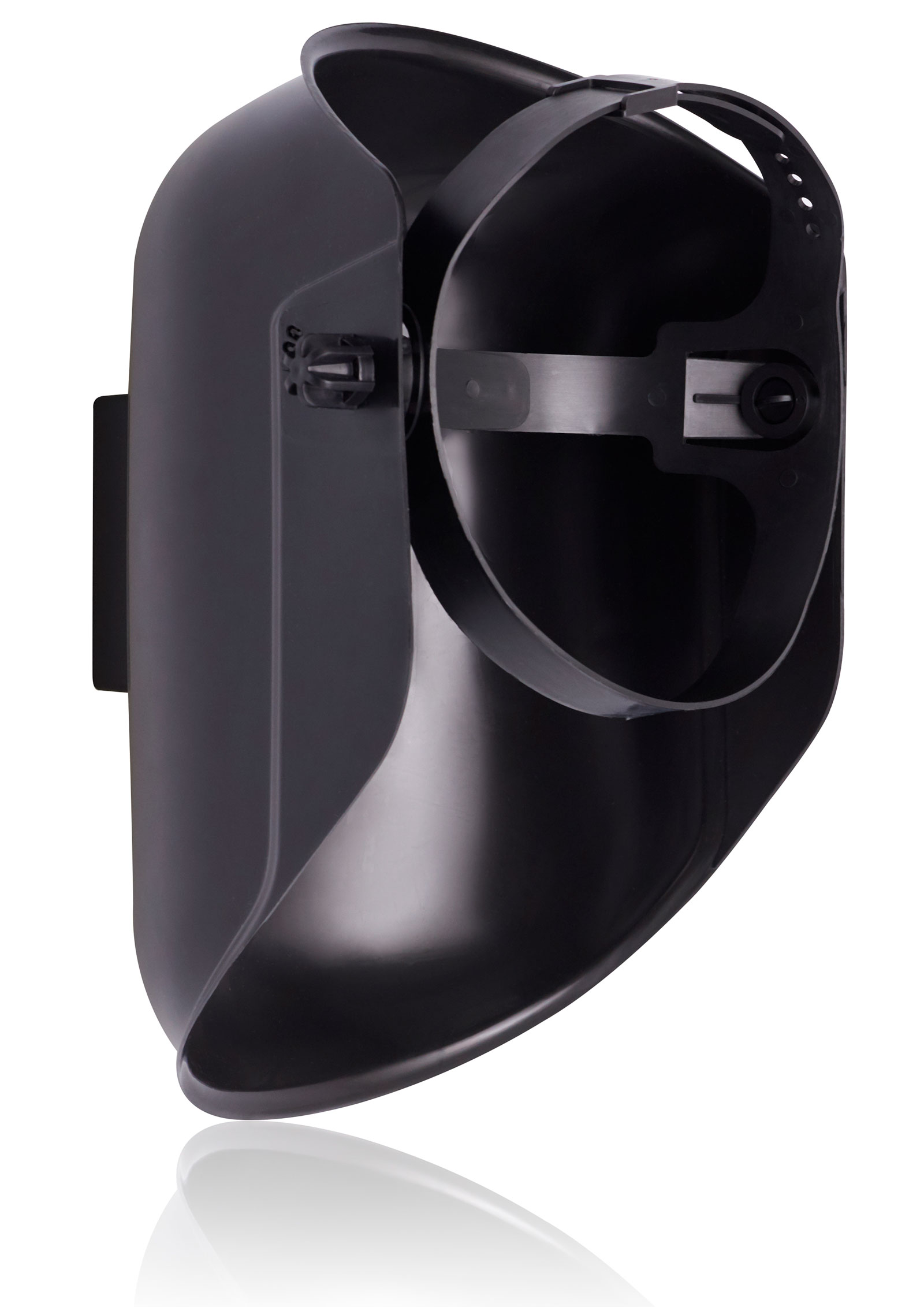 Щиток снабжен наголовным креплением, которое отливается из ПВД на литьевых станках целиком, без каких либо стыков. Наголовное крепление обеспечивает пределы регулирования охвата головы и крепится к корпусу гайко-барашками с помощью фиксаторов, которые обеспечивают перемещение и фиксацию корпуса из закрытого положения в открытое и обратно без усилий. Наголовное крепление по отношению к корпусу имеет три положения для фиксации, что дает возможность сварщику собирать щиток по своему индивидуальному размеру головы.