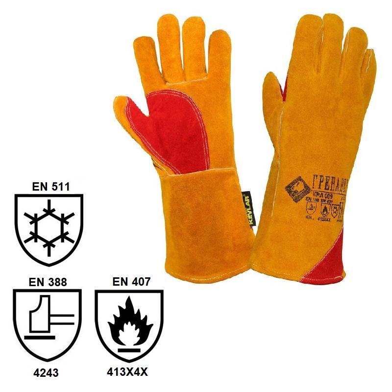 Купить Краги сварщика из натуральной кожи ГРЕНАДЕР желтые утепленные в Екатеринбурге и Свердловской области можно в сети магазинов КРЕПЕЖ-СИТИ.
