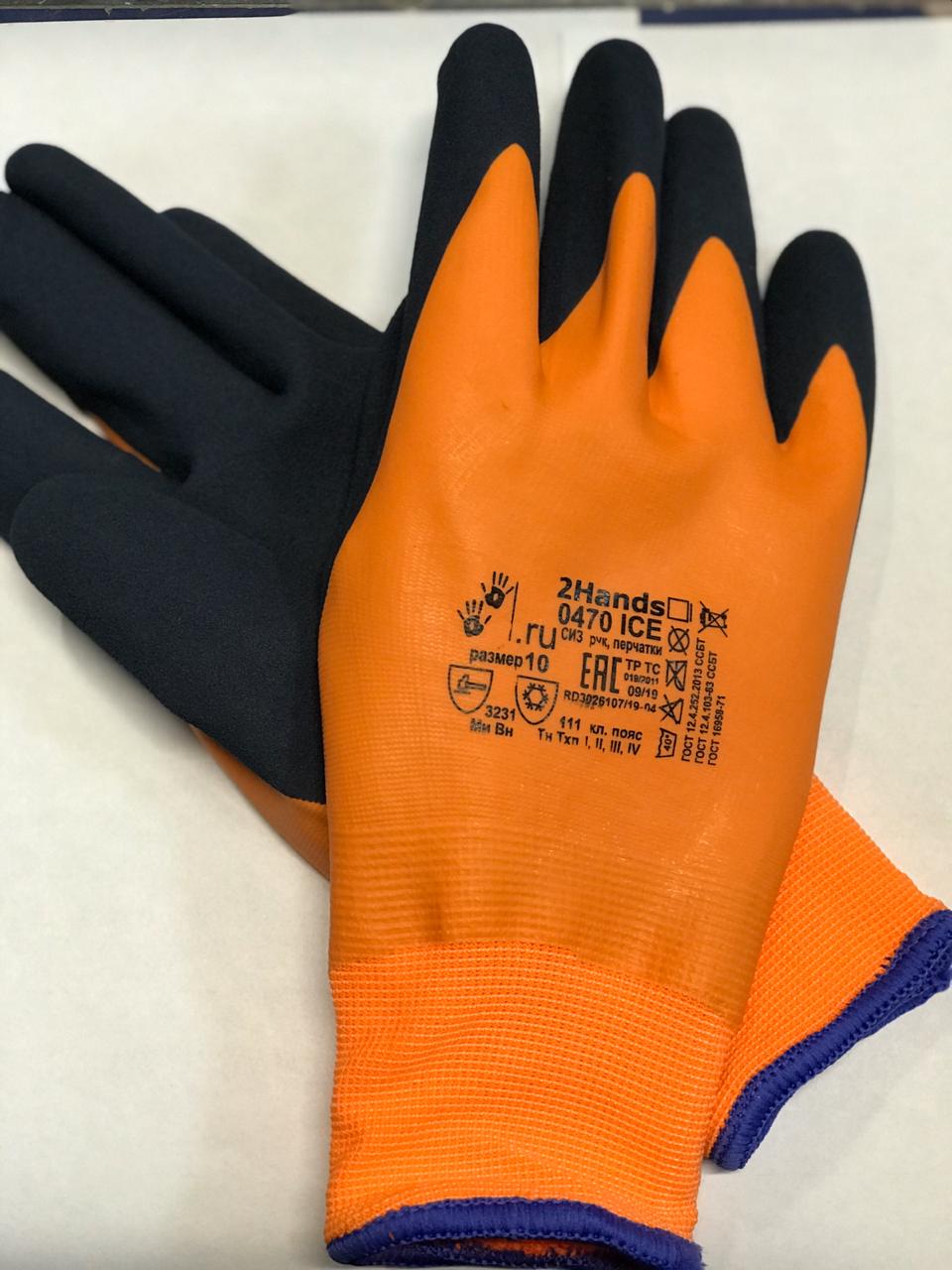 Перчатки утепленные Dry ICE, 7G двойной латекс, оранжевые, 2Hands, р-р 10