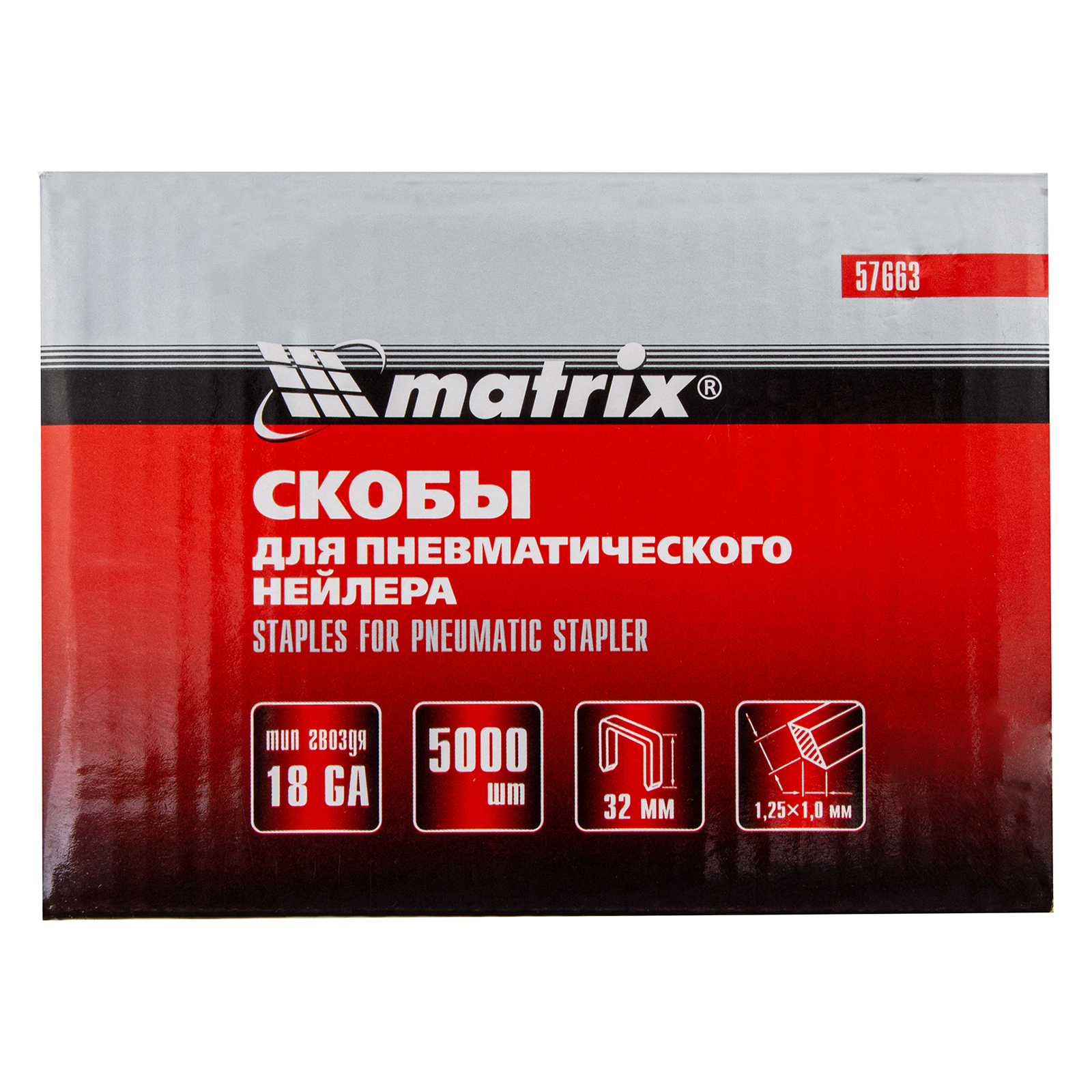 Скобы для пнев. степлера 32*1,25*1,0мм, шир скобы 5,7мм, 5000 шт, тип 18GA, MATRIX