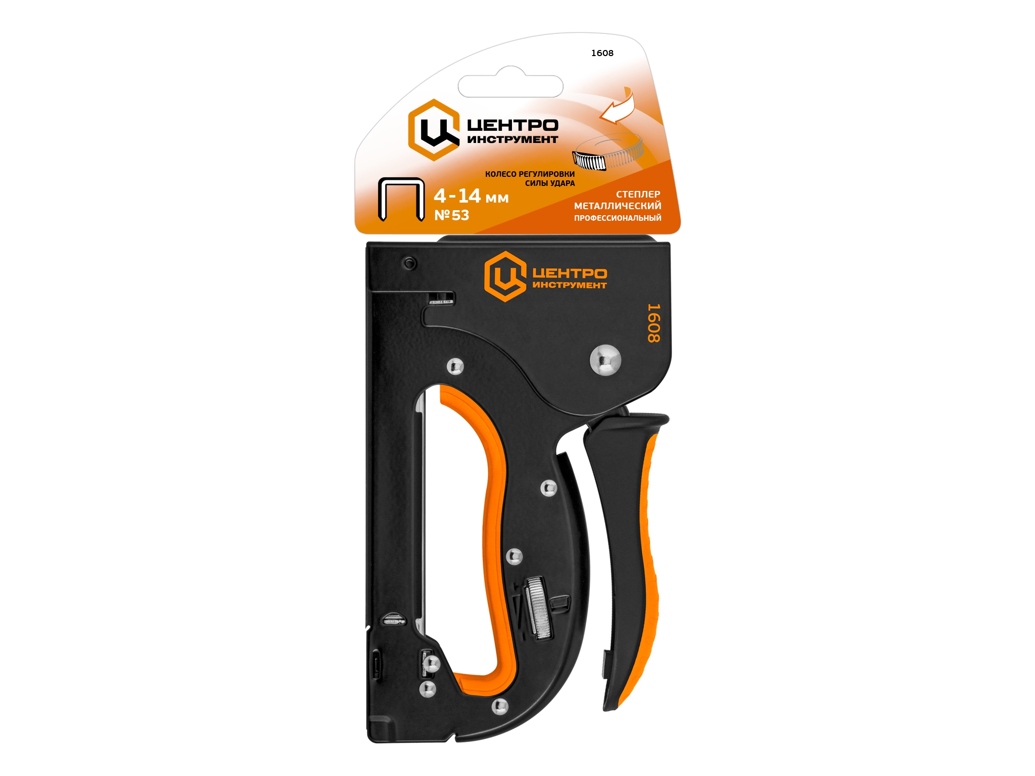 Степлер металлический, усиленный, скоба 53 тип, регулировка силы удара, Центроинструмент