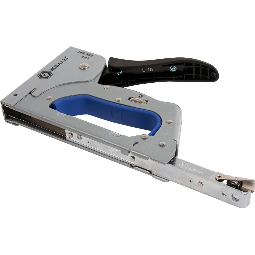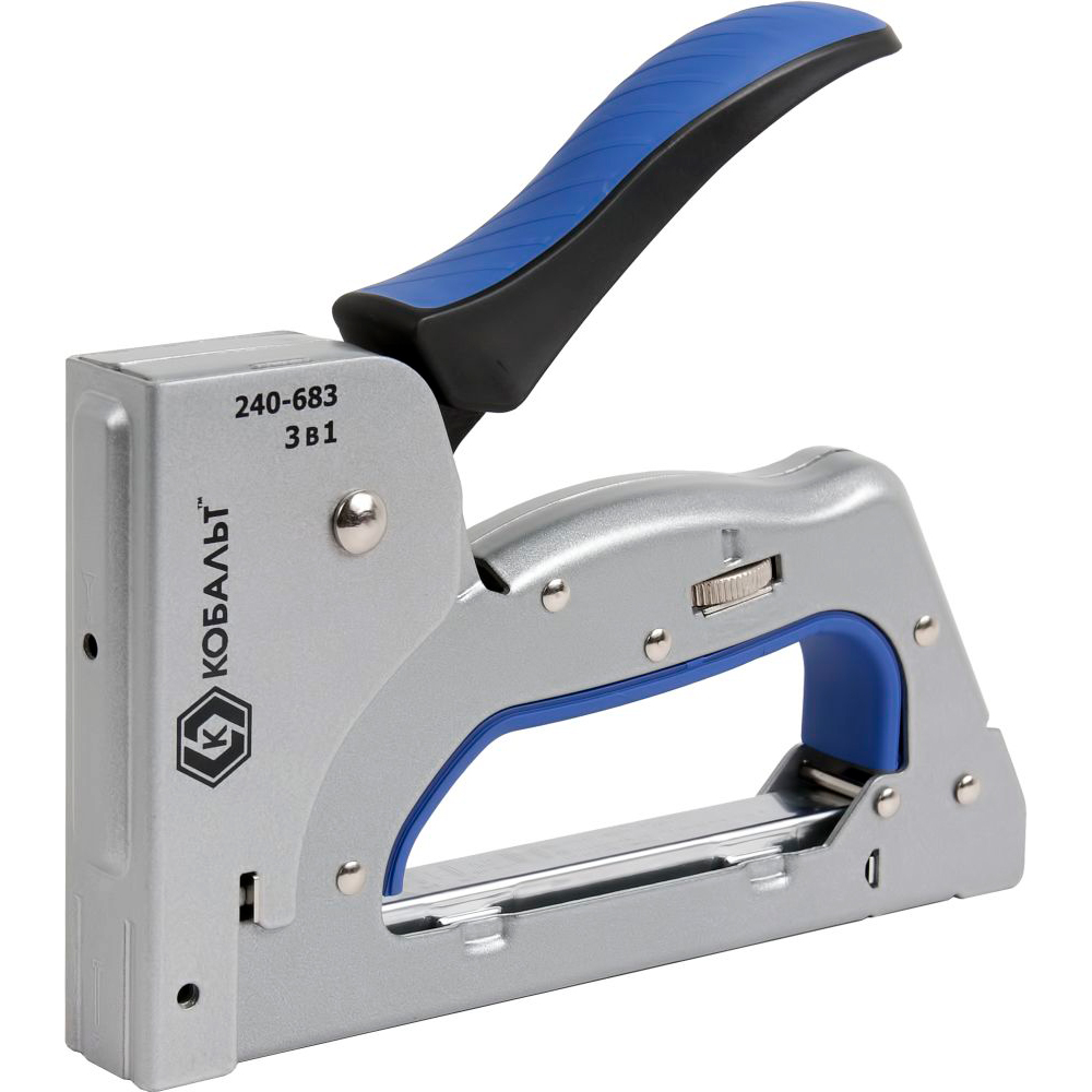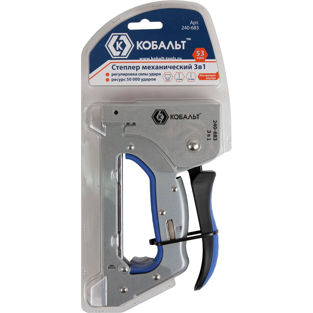 Степлер мебельный 6-14мм, 3 в 1, тип 53, шпильки, гвозди, регулятор удара, КОБАЛЬТ