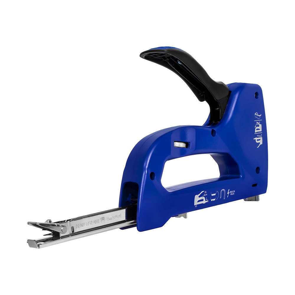 - Степлер имеет плоскую боевую пружину и регулировку силы удара для работы с твердыми и мягкими материалами.
