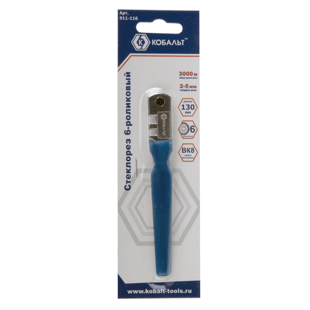 Стеклорез с 6 роликами 130мм, пластиковая рукоятка, толщина стекла 2-5мм, КОБАЛЬТ