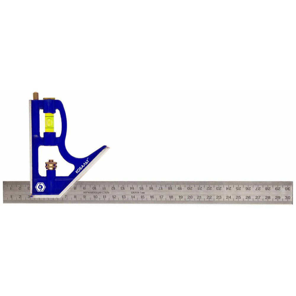 Угольник 300мм с уровнем, нержавеющая сталь, КОБАЛЬТ