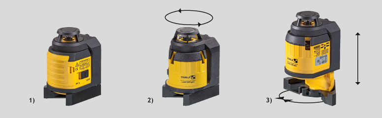 3) Благодаря регулируемой по высоте ножке можно изменять высоту лазерной линии. Нижняя опорная часть прибора позволяет устанавливать лазерный прибор, например, на U-образные металлические профили для сухой штукатурки.