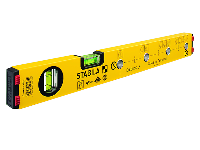 Уровень тип 70 Electric, 43см (1 верт., 1 гориз., точность 0,5мм/м) для электрика, STABILA