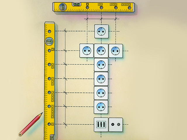 - За счет одной рабочей операции можно произвести точную и правильную разметку под выключатели или электрические розетки, как в горизонтальном, так и в вертикальном положении.
