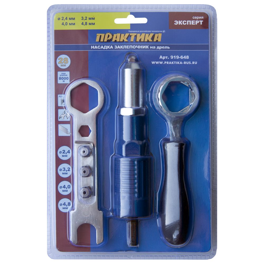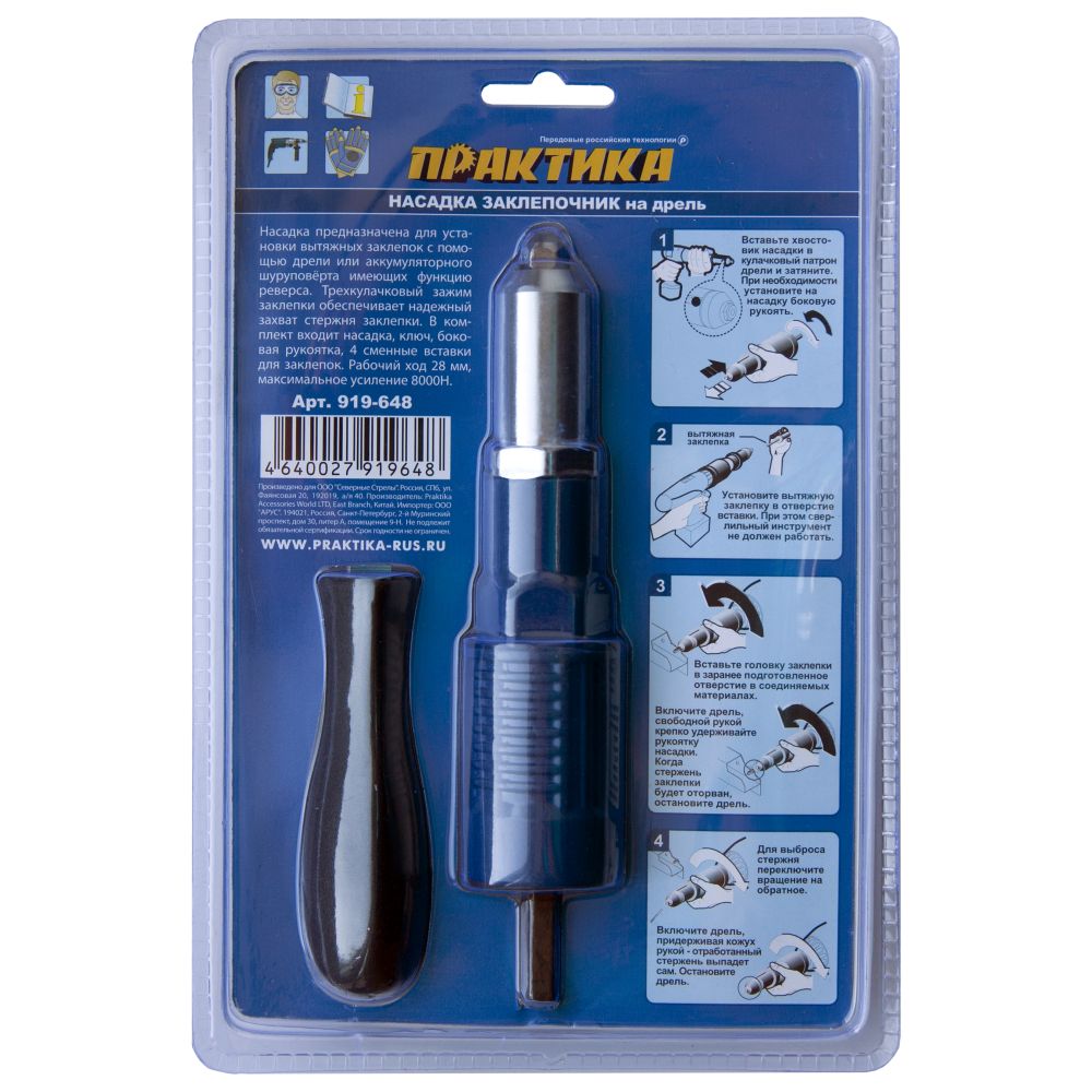 Насадка для шуруповерта для заклепок 2,4-4,8мм, металлический корпус, боковая рукоятка, ПРАКТИКА