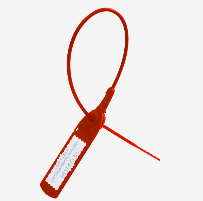 Представляет собой универсальную пластиковую пломбу рабочей длиной 220 мм с белым полем методом литья. Замок-вставка выполнена из нержавеющей стали.