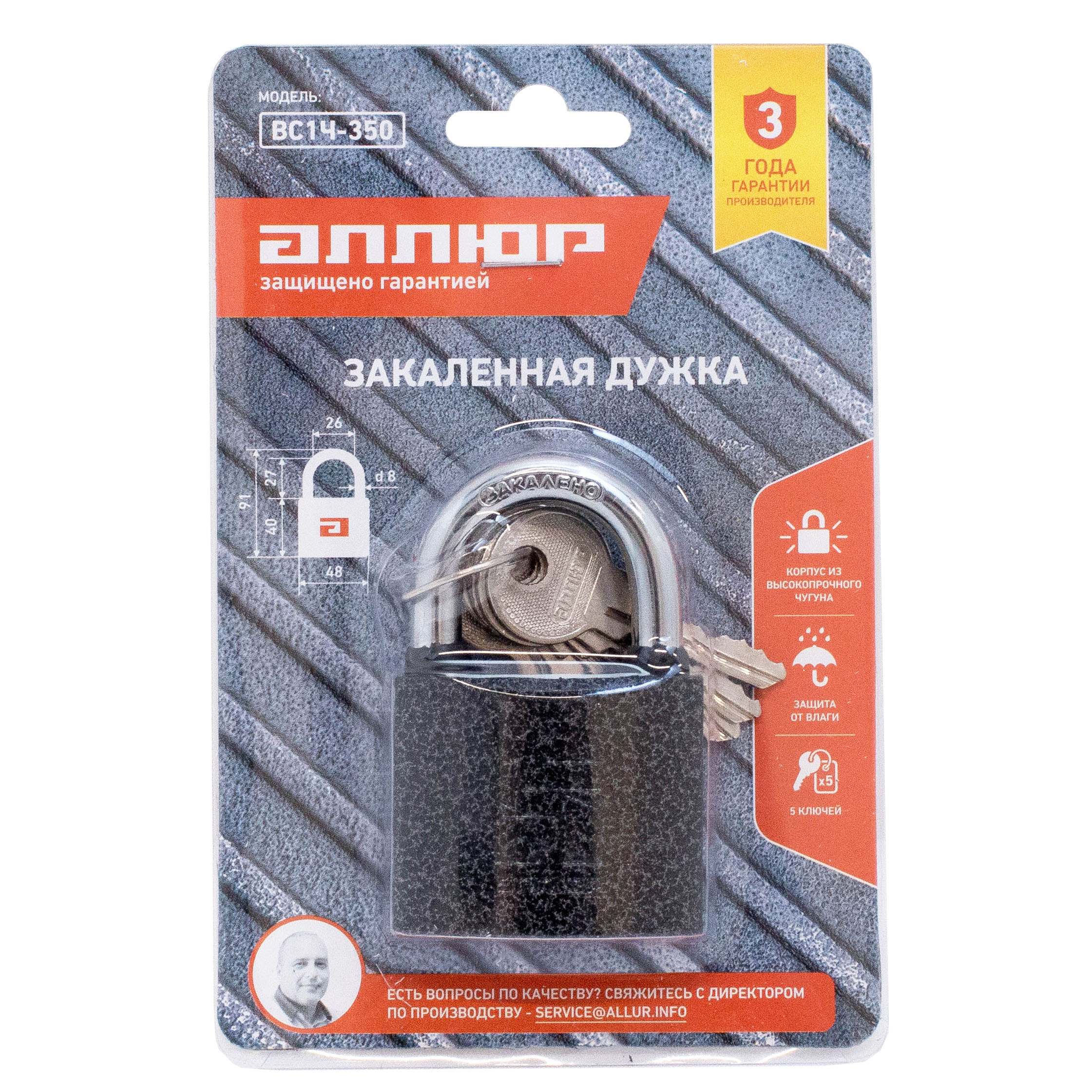 Замок навесной Аллюр ВС1Ч-350 (48*91мм) d8мм, 5 ключей, полимер