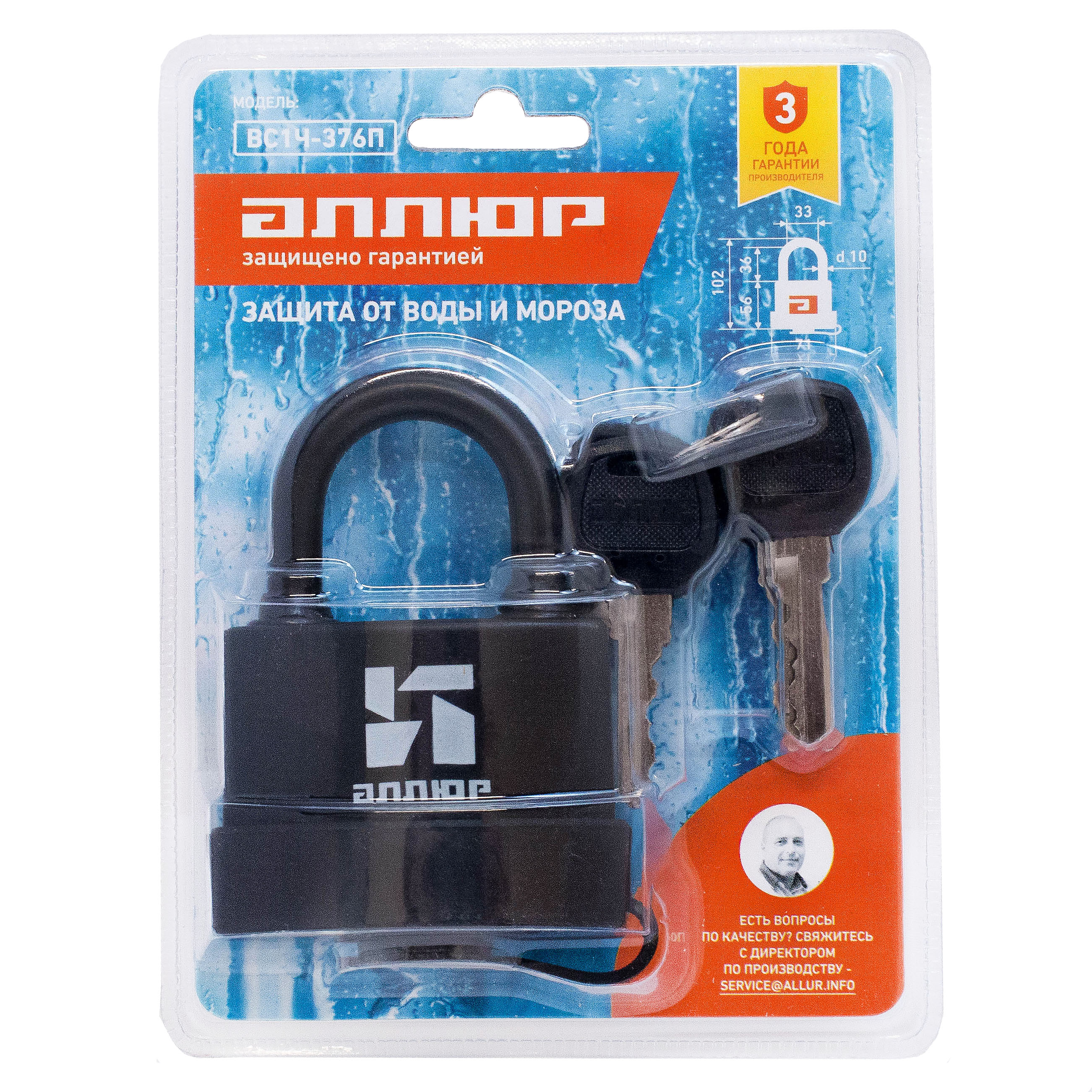 Замок навесной Аллюр ВС1Ч-376П (71*102мм) d10мм, 6 ключей, всепогодный