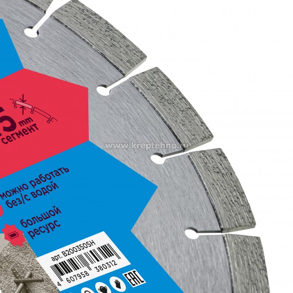 Сегментный алмазный диск по армированному бетону 350 мм Super Hard Бетон Kronger