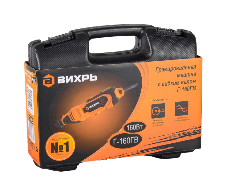 Минидрель-гравер электрический Вихрь Г-160ГВ, 160Вт, 8000-30000об/мин, цанга 2,4-3,2мм, гибкий вал, кейс
