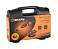 - Электрогравер поставляется в пластиковом кейсе, в котором его удобно хранить и перемещать. Кроме самого устройства и гибкого вала в этом кейсе можно найти набор насадок и ключей.