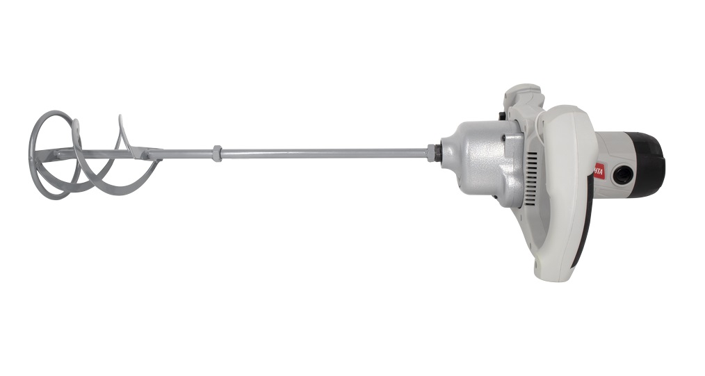 - В основе конструкции миксера лежит мощный электромотор с энергопотреблением 1600 Вт, благодаря чему устройство легко справляется с обработкой тяжелых строительных смесей.