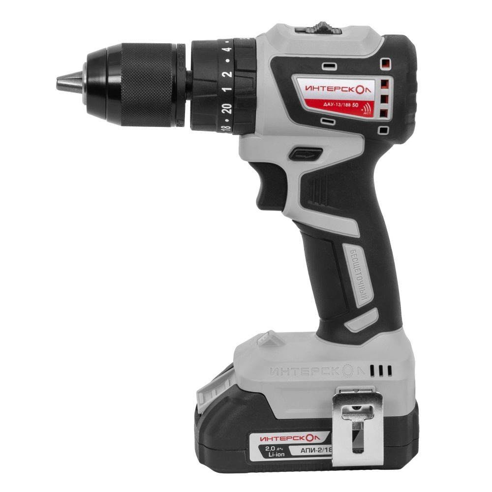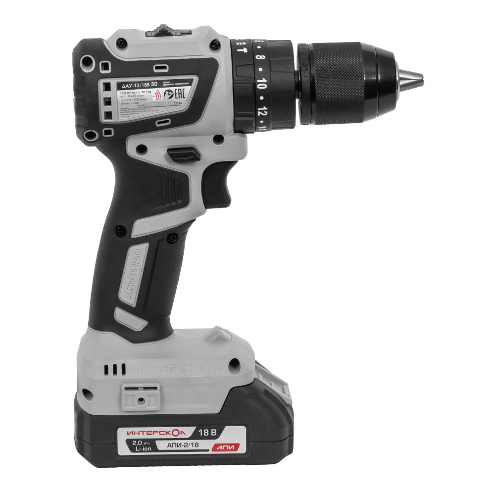 Аккумуляторная дрель-шуруповерт ударная ИНТЕРСКОЛ ДАУ-13/18В 50, 2*2,0Ач, Li-ion АПИ, ЗУ, БЗП 13мм, 45Нм, б/щ, 2 аккум, кейс
