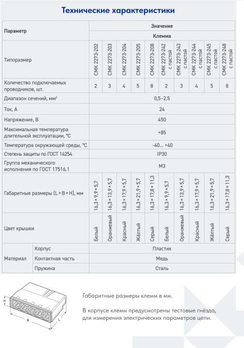Клеммы СМК серии 2273 предназначены для соединения одножильных медных проводников без использования инструмента.