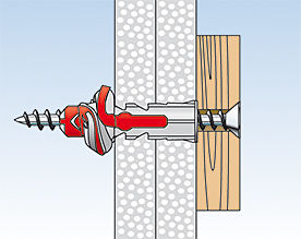 - Дюбель DUOPOWER с кромкой пригоден для предварительного монтажа.