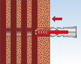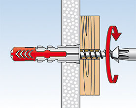 - Вворачивание шурупа обеспечивает распор дюбеля DUOPOWER в полнотелом строительном материале, связывание в полостях пустотелых материалов и распор лопастей дюбеля в листовых материалах.