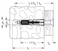 Монтаж DUOPOWER с увеличенной глубиной анкеровки в пустотелый кирпич: