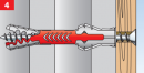 - если дюбель используется с листовым материалом, то сразу за этим слоем он сложится подобно гармошке, формируя крестообразную распорку.
