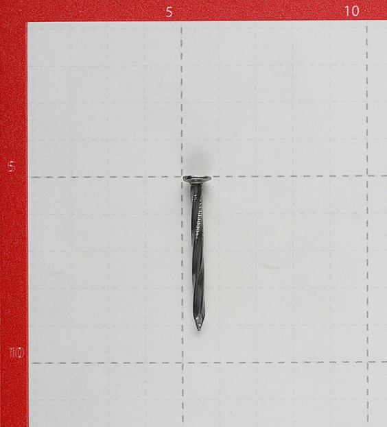 Гвоздь представляет собой длинный и прямой стержень квадратного сечения, завинченный по спирали, с небольшими неровностями рядом со шляпкой, что улучшает качество соединения.