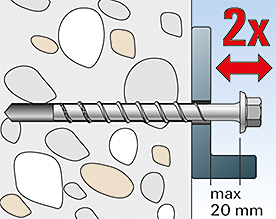 - Первый бетонный винт диаметром 6мм и переменной глубиной заделки обеспечивает высокую гибкость и точную адаптацию к нагрузкам.
