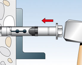 Во время затяжки конус перемещается в распорную втулку и расширяет ее, прижимая к стенкам просверленного отверстия.