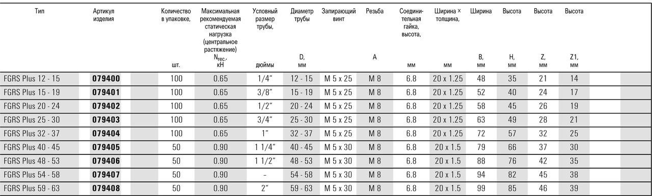 Хомут для труб 15-19, (3/8"), М8/10 FGRS Plus, Fischer