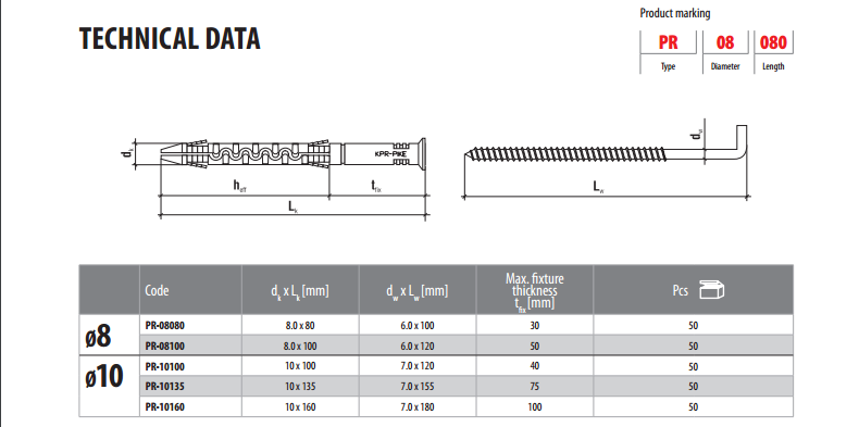 Дюбель с Г-образным крюком PR 8*100, Wkret-met (Польша)