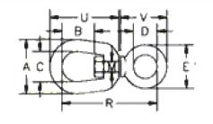 Вертлюг петля-кольцо не имеет разборных частей – для соединения его с цепью, другим такелажным элементом требуется карабин или соединительное звено.