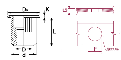 Заклепка резьбовая М10х1,5х20,0, сталь, стандартный борт с насечками