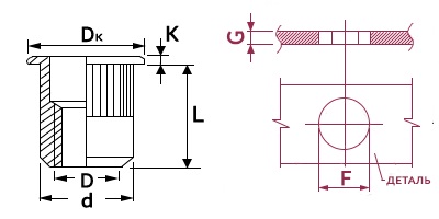 Заклепка резьбовая М12х1,75х22,0, сталь, стандартный борт с насечками