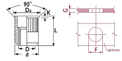 Заклепка резьбовая М12х1,75х22,0, сталь, уменьшенный борт с насечками