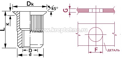 Купить Заклепку резьбовую потайной бортик с насечкой в Екатеринбурге и Свердловской области можно в сети магазинов КРЕПЕЖ-СИТИ.