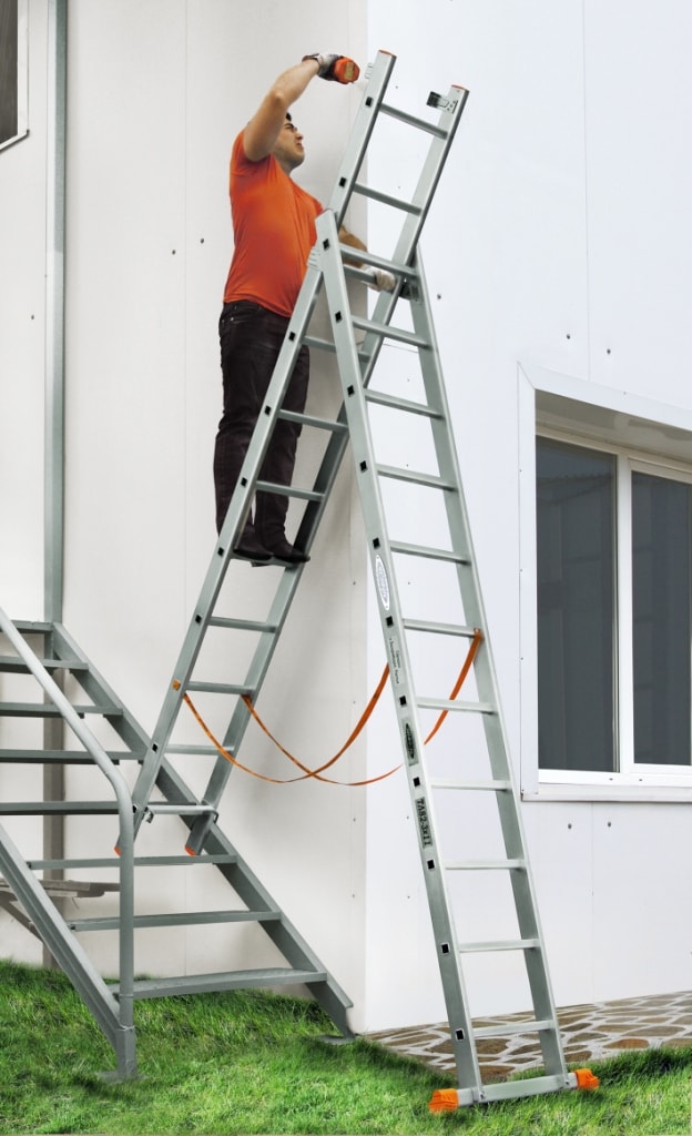 Лестница алюминиевая 3х 8 Эйфель Классик, L=5.99, индустриальная (профиль 82х23мм)