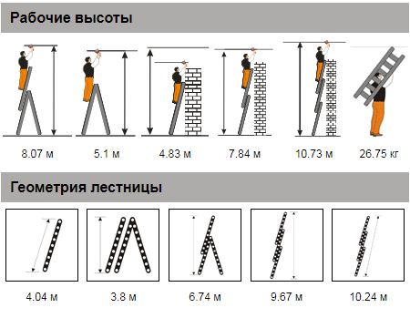 Лестница алюминиевая 3х14 Эйфель Классик, L=10.73, индустриальная (профиль 82х23мм)