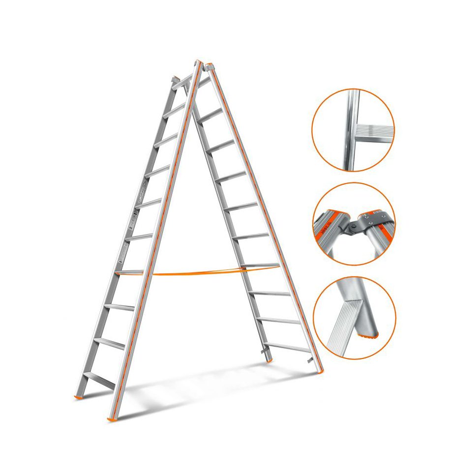 - Повышенная безопасность работы. Благодаря особенностям конструкции, стремянка двусторонняя очень устойчива