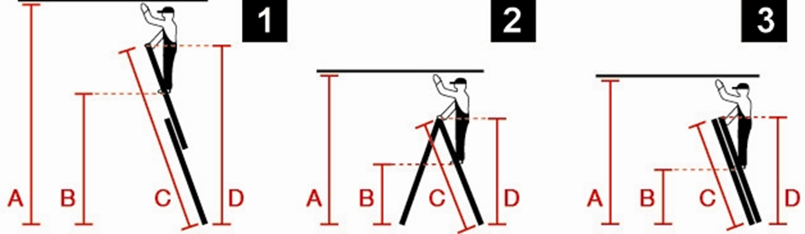 - Рабочая высота в положении «раздвижная/приставная лестница» (1A – 4A) 4.85 – 3.20 м