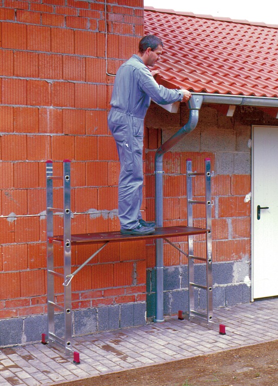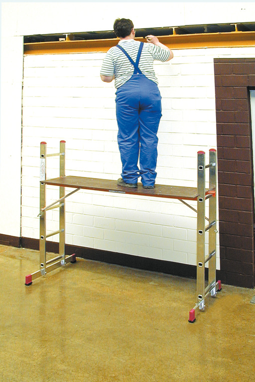 - Благодаря изменению высоты платформы с интервалом от перекладины к перекладине возможна установка подмостей на лестницах и уступах