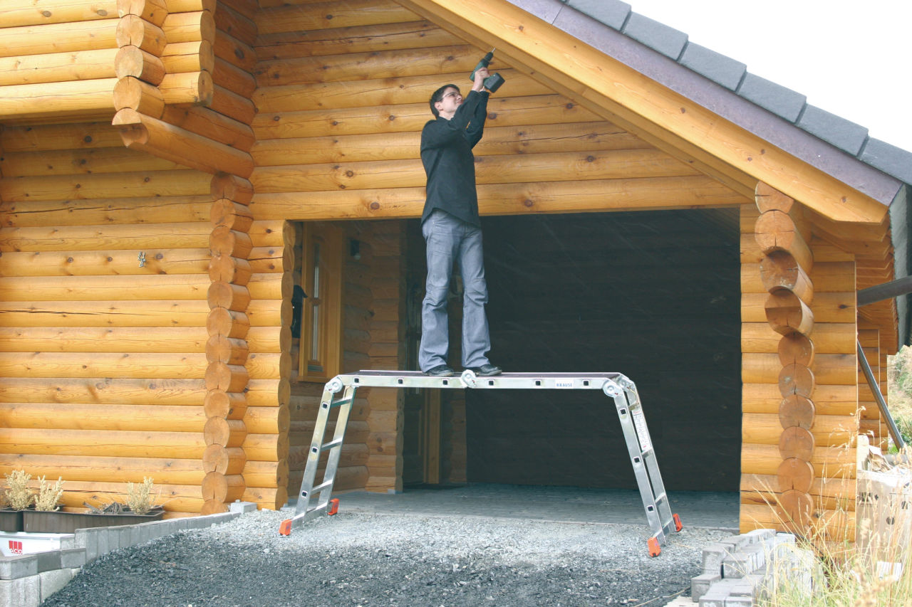 Данную многофункциональную шарнирную лестницу Вы можете использовать как приставную лестницу, стремянку или подмости.